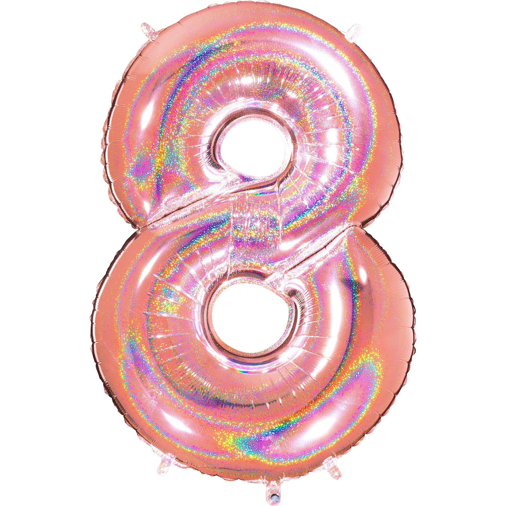 Add a touch of glamour to your celebration with our stunning 40" Rose Gold Glitter Holographic Number Balloons! These show-stopping balloons feature a mesmerizing holographic finish with glitter accents that catch the light beautifully from every angle.